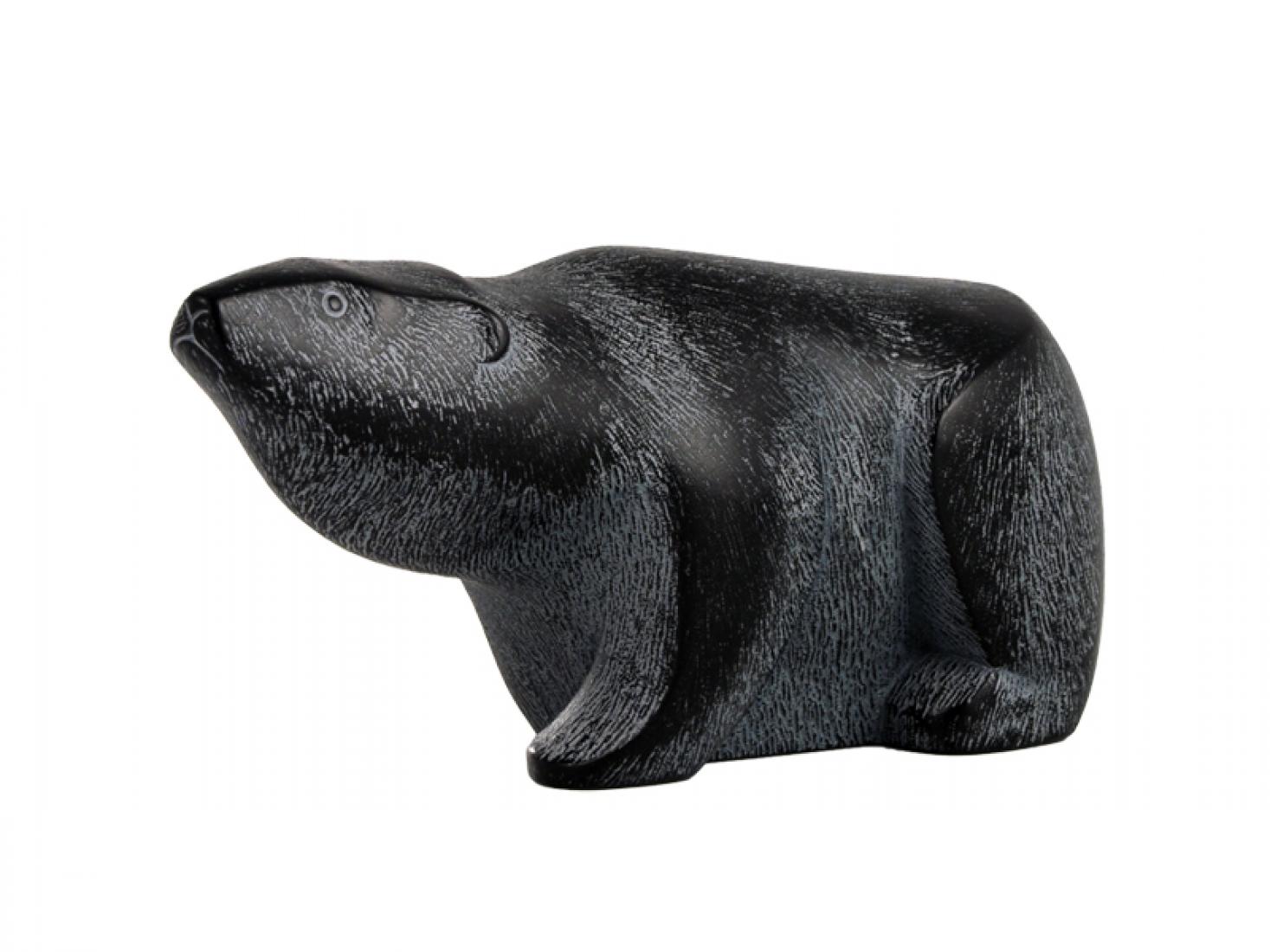 The Inuit carved small sculptures of animals and human figures depicting everyday activities and the animals that make up the integral part of their lives. These sculptures, by various contemporary artists, are carved in the traditional style and reproduced from a blend of natural minerals and man made binders which simulates the look and feel of soapstone. Non-toxic and environmentally safe, each piece is molded, cast and hand polished with a naturally derived wax.