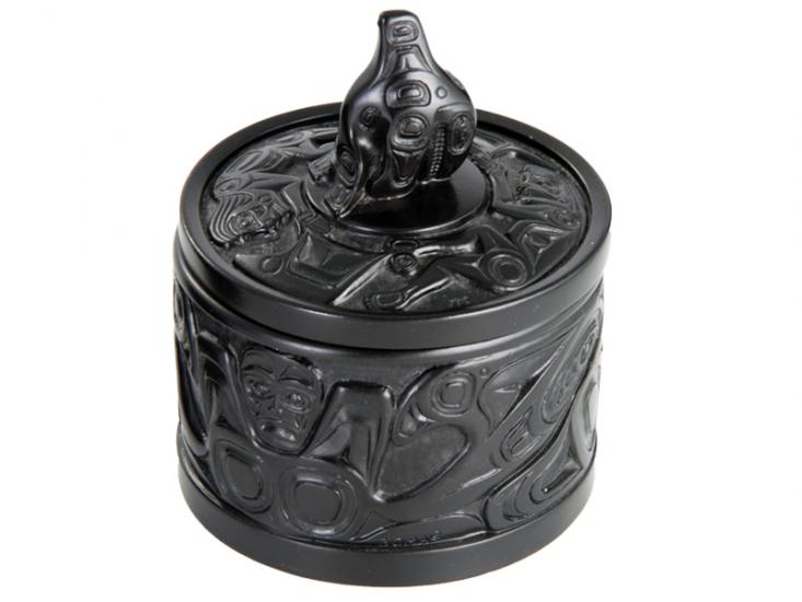 Desk Box-Killer whale Black SKU: 00-04-085 $60.00Box carved in West Coast Native motif made of a crushed marble composite. Canadian made. Qty