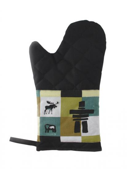 Oven Mitt with Inukshuk design. Made in Canada 12" long