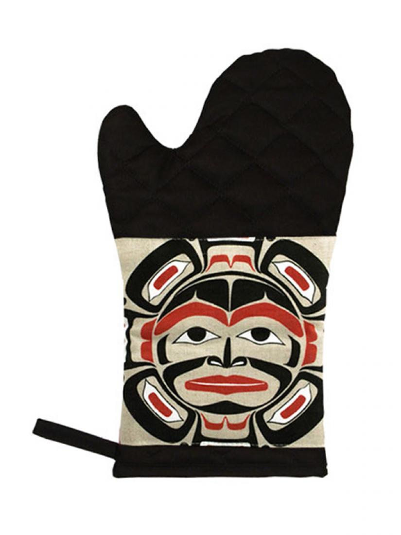 Oven Mitt with Moon Mask design by Klatle-Bhi. Made in Canada. 12" long