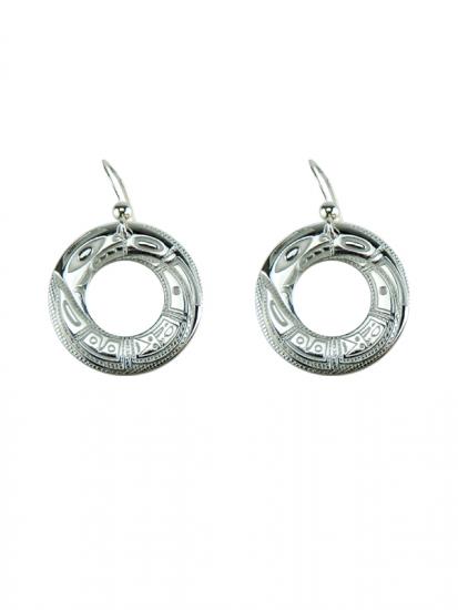 These beautiful and elegant earrings by Corrine Hunt is made of a special silver and pewter alloy and is presented on a sterling silver chain. This piece has been 100% designed and made in Canada.