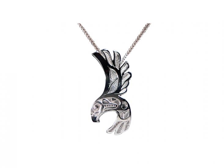 This beautiful and elegant pendant by Bill Helin is made of a special silver and pewter alloy and is presented on a sterling silver chain. This piece has been 100% designed and made in Canada.