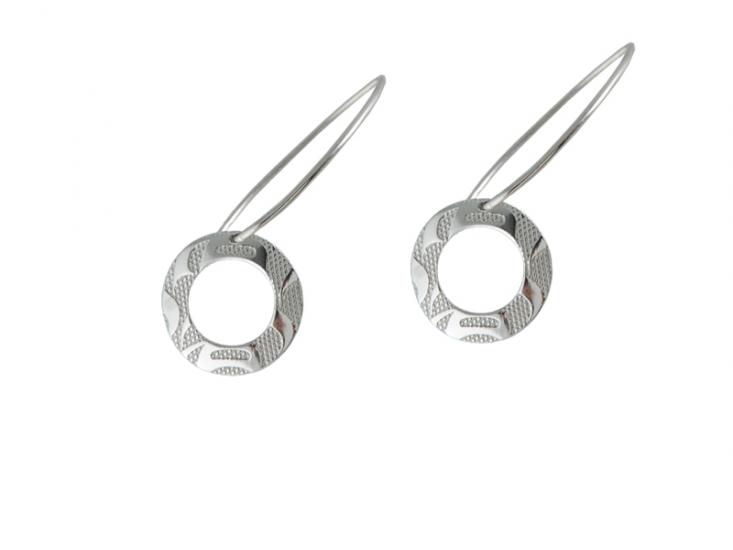 These beautiful and elegant earrings by Corrine Hunt are made of a special silver and pewter alloy. They are 100% designed and made in Canada. 1" diameter