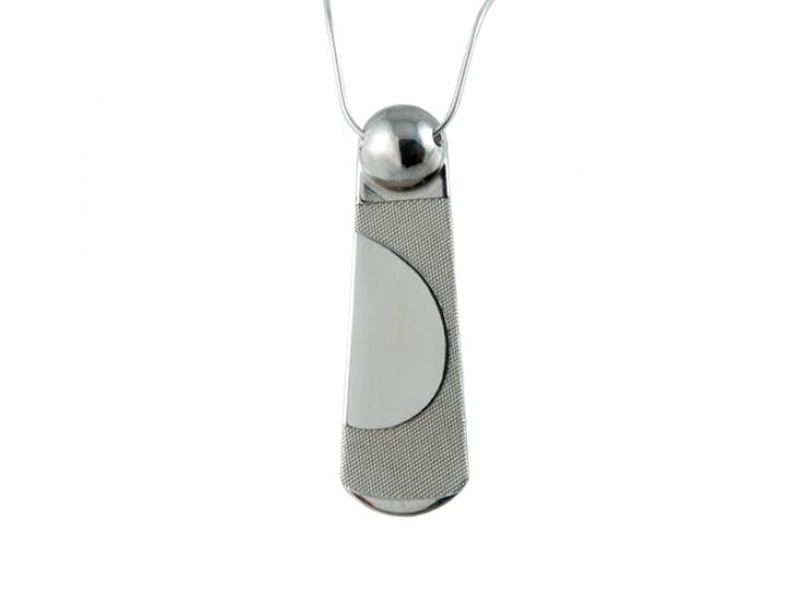 This beautiful and elegant pendant by Corrine Hunt is made of a special silver and pewter alloy and is presented on a sterling silver chain. This piece has been 100% designed and made in Canada. 2 1/2" x 3/4" pendant with 18" chain.