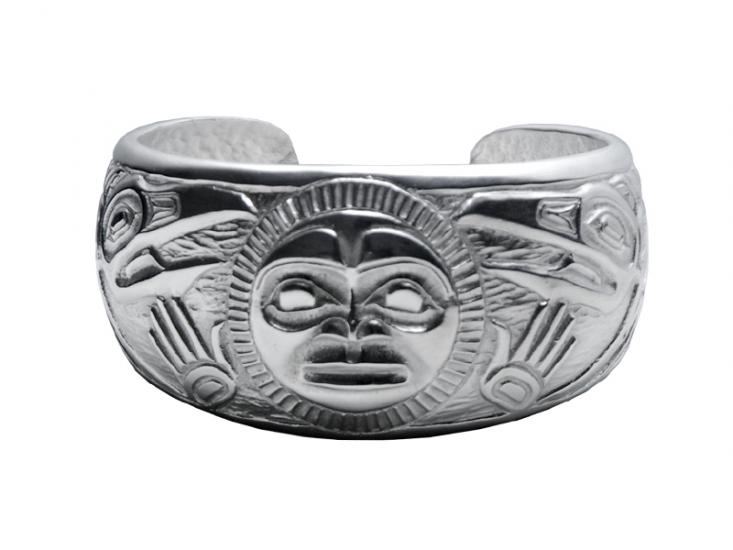 Tsimshian native artist Bill Helin enjoys a very rewarding career as a creative gold engraver, painter, woodcarver, and book illustrator. He loves to paint mythological images to educate people on the history of the Tsimshian nation and the many stories passed down through his ancestors. His greatest passion however is to spiritually represent and bond individuals together through the use of native Life Crest symbols. The art of Bill Helin is reproduced in collaboration with the artist and royalties are paid to the artist on each item sold.