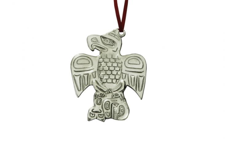 Thunderbird Pewter Ornament SKU: 00-06-233 $30.003" Thunderbird Pewter Ornament, Made in Canada of fine lead free Pewter. Qty
