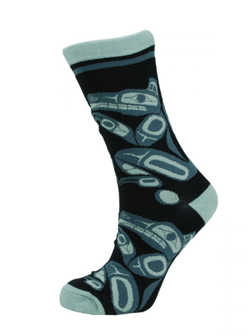 Cotton Crew Socks with Wolf design by artist Ben Houstie. Turquoise.