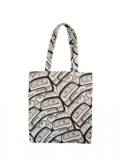 Reusable 100% cotton shopping bag with Frog Box Grey design by artist Bill Helin. 16.5" x 15"
