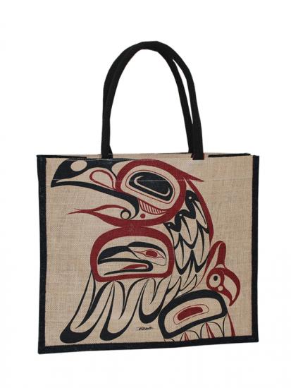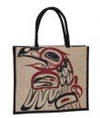 Jute bag with Bill Helin Raven design. Natural. 14" x 16"