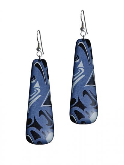 Corrine Hunt Silk Inspiration Drop Earrings with Sterling Silver Hooks. Blue. 2" x 3/4"