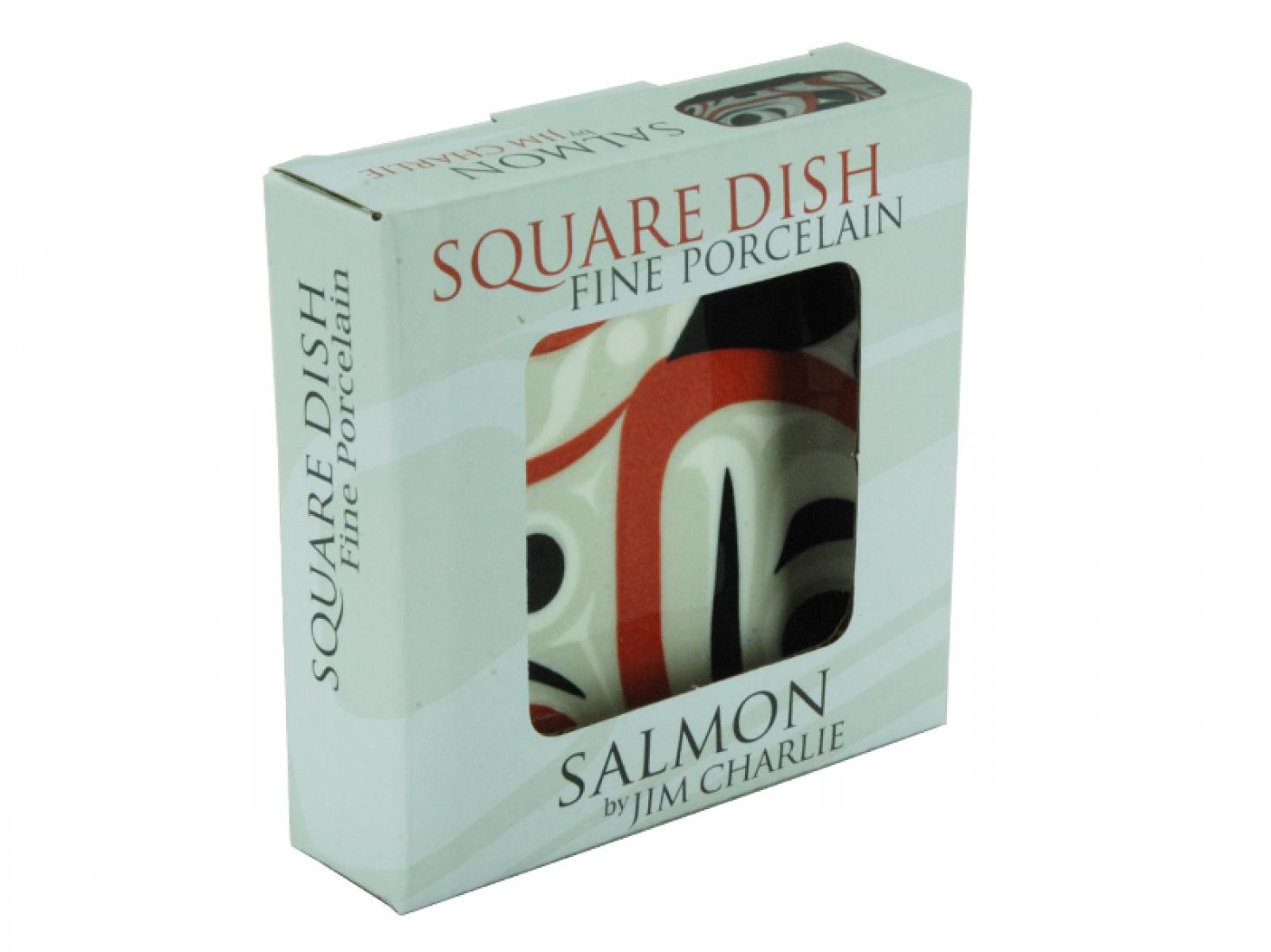 JC Salmon Small Square Jim Charlie SKU: 45-45-361 $10.00Small Square Ceramic Bowl with Salmon design by artist Jim Charlie. 3.5" x 3.5" Qty