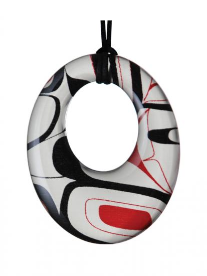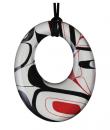 Kelly Robinson Silk Inspiration Roundl Penadant with Satin Cord. Red/Black. 3" x 2.5"